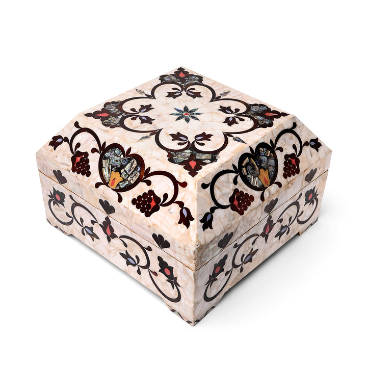 الخامات المستخدمه -صدف ابيض اصلي درجه اولي-صدف ازرق اصلي درجه اولي-جلد صناعيالمقاسات المتاحه25X25CM ^15CM30X30CM ^17CM